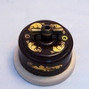 Ретро выключатели: керамика, поворотн. проходной. Коричн.+ золото, ручка «бронза», тёмн. подложка. - Z24-21-2z